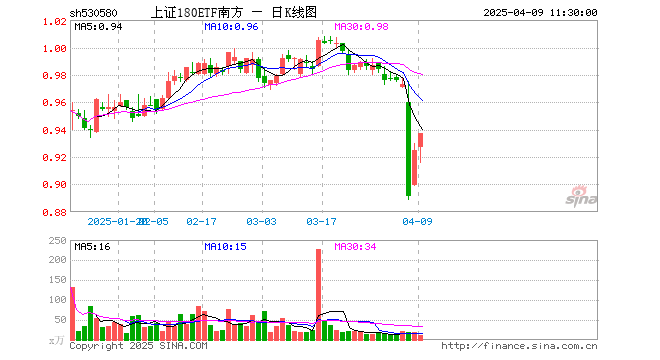 上证180ETF南方(530580)业绩比较基准为上证180指数收益率,管理人为南方基金管理股份有限公司,基金经理为杨恺宁、潘水洋,成立(2024-12-30)以来回报为-6.90%,近一个月回报为-6.24%。